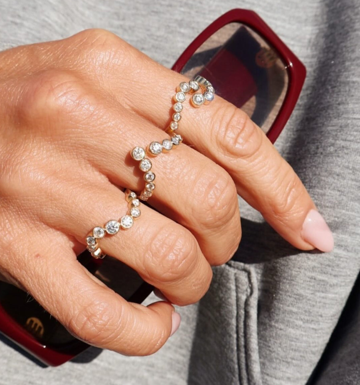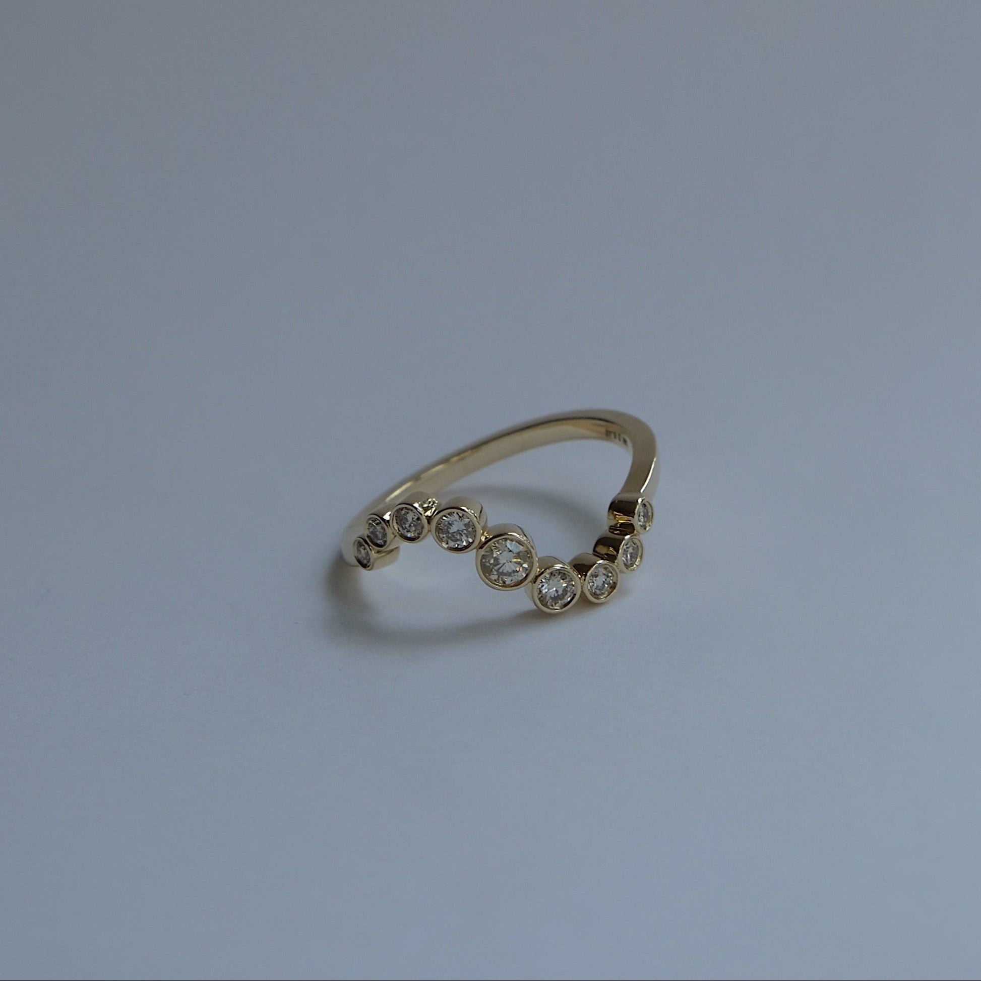 This Diamond Ring features graduating Diamonds set in bezel setting with a flowing contour.