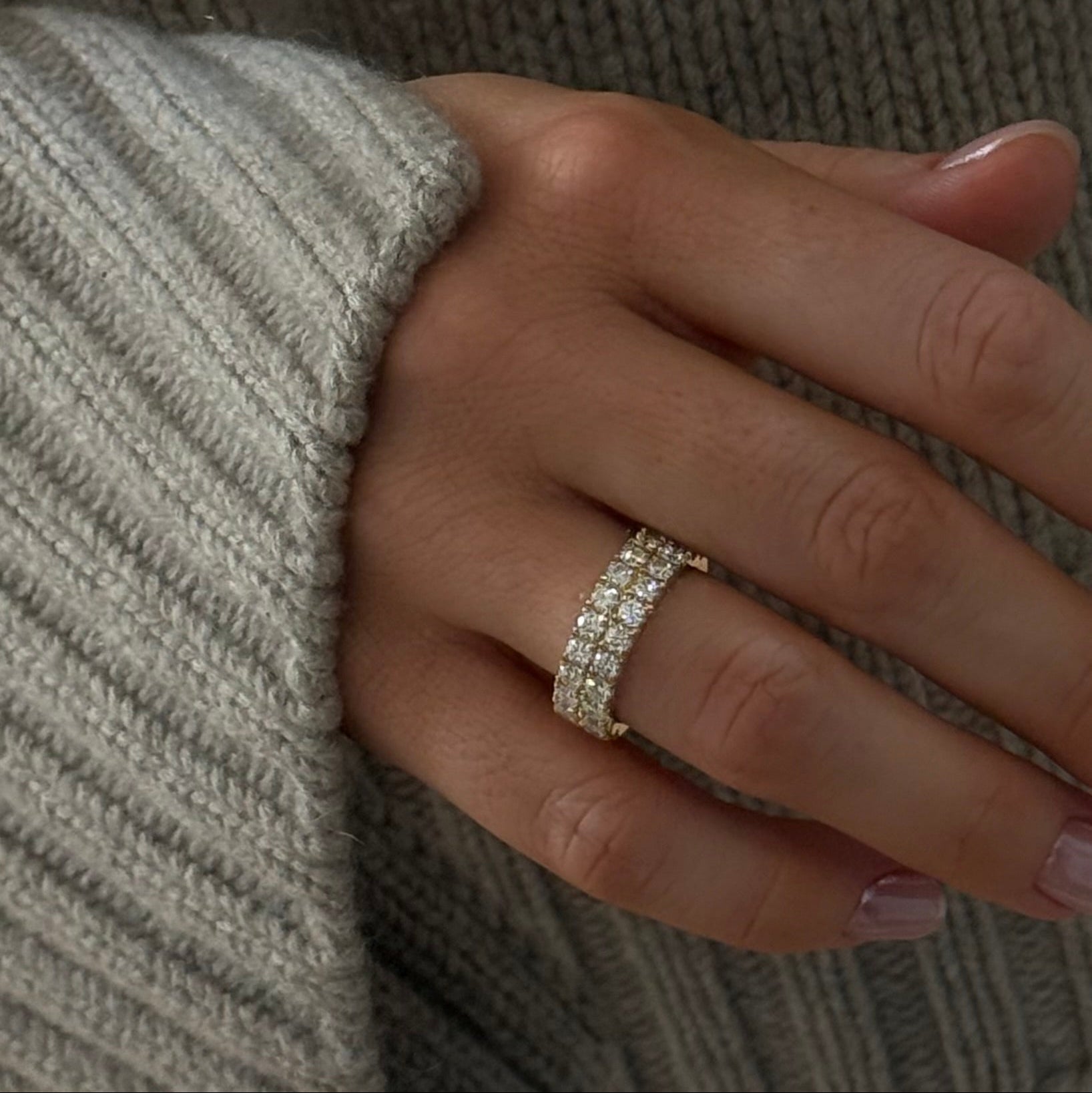 A timeless and forever piece of Double Half Eternity Diamond ring that is perfect for a Wedding Band.